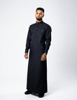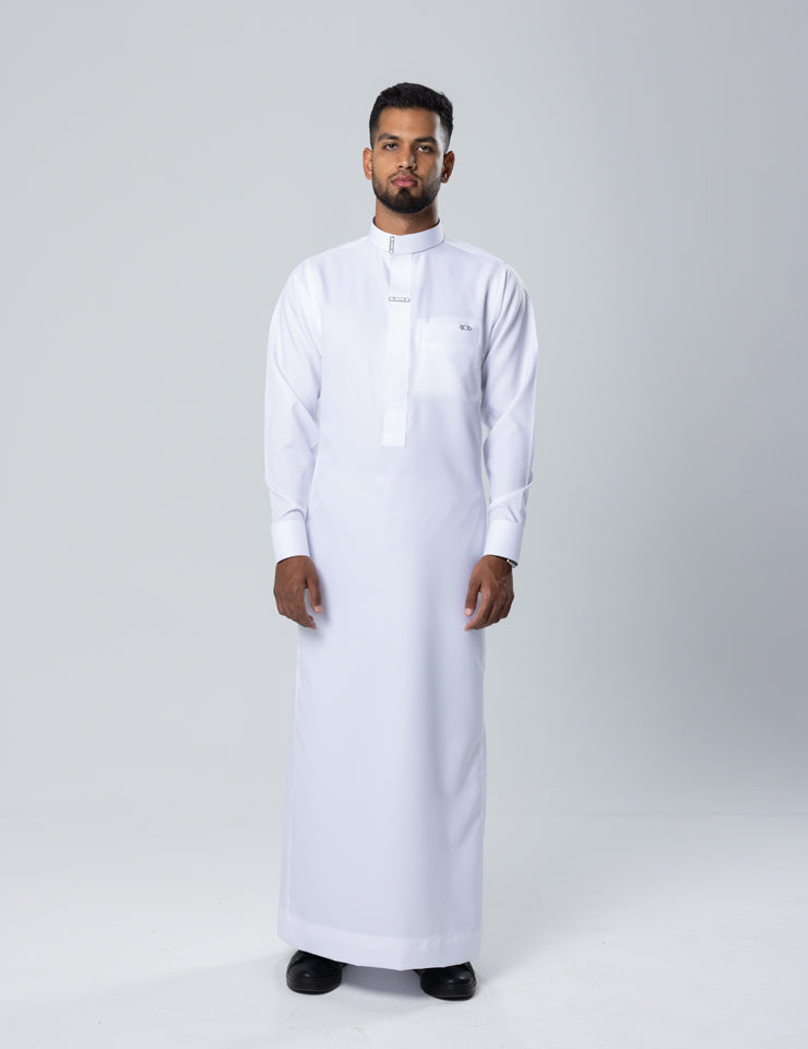 A concealed hidden zip ensures effortless wear while preserving the seamless front profile expected of a premium Saudi thobe.
