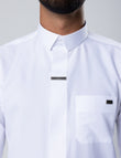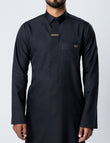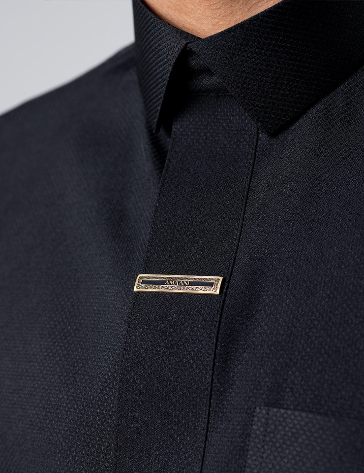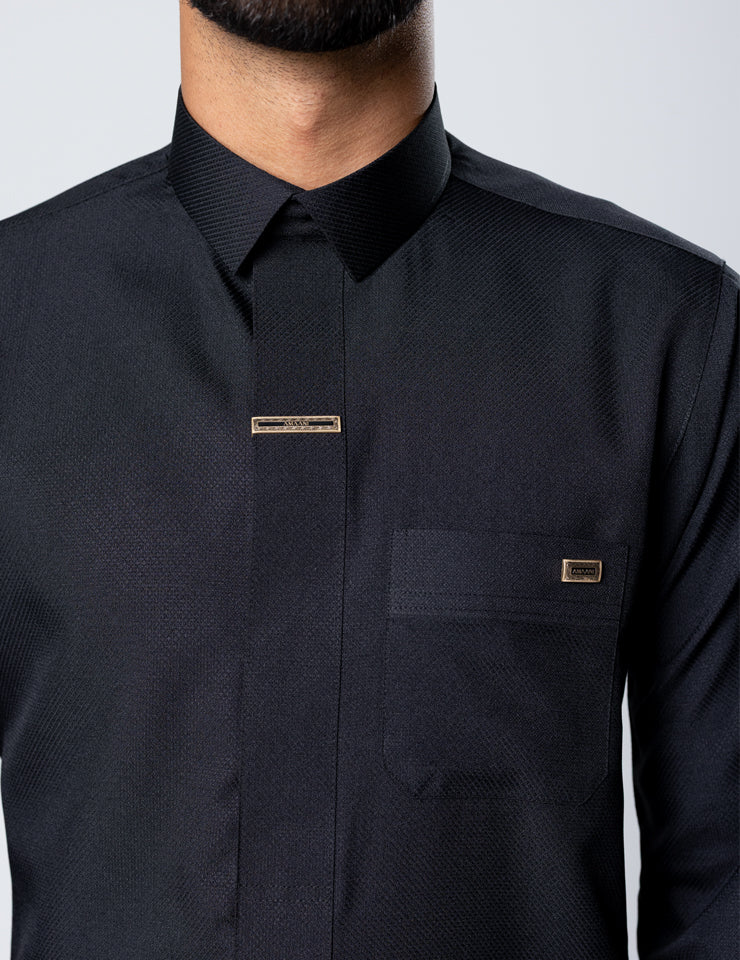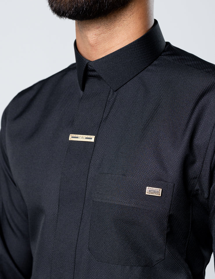 The shirt-style collar introduces a refined contemporary edge, setting Fakhama apart within the Amaani collection. Signature Amaani buttons are placed along the placket and upper chest pocket, delivering subtle yet confident detailing that complements the structured design.