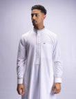 Fit: Tailored for a sleek, polished silhouette. Elevate your wardrobe with the Amaani Sultan Thobe—where every detail speaks of sophistication.