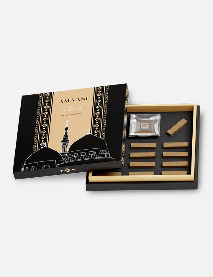 Experience the rich and intricate aroma of bakhoor like never before with the Amaani Premium Oud Bricks.