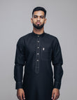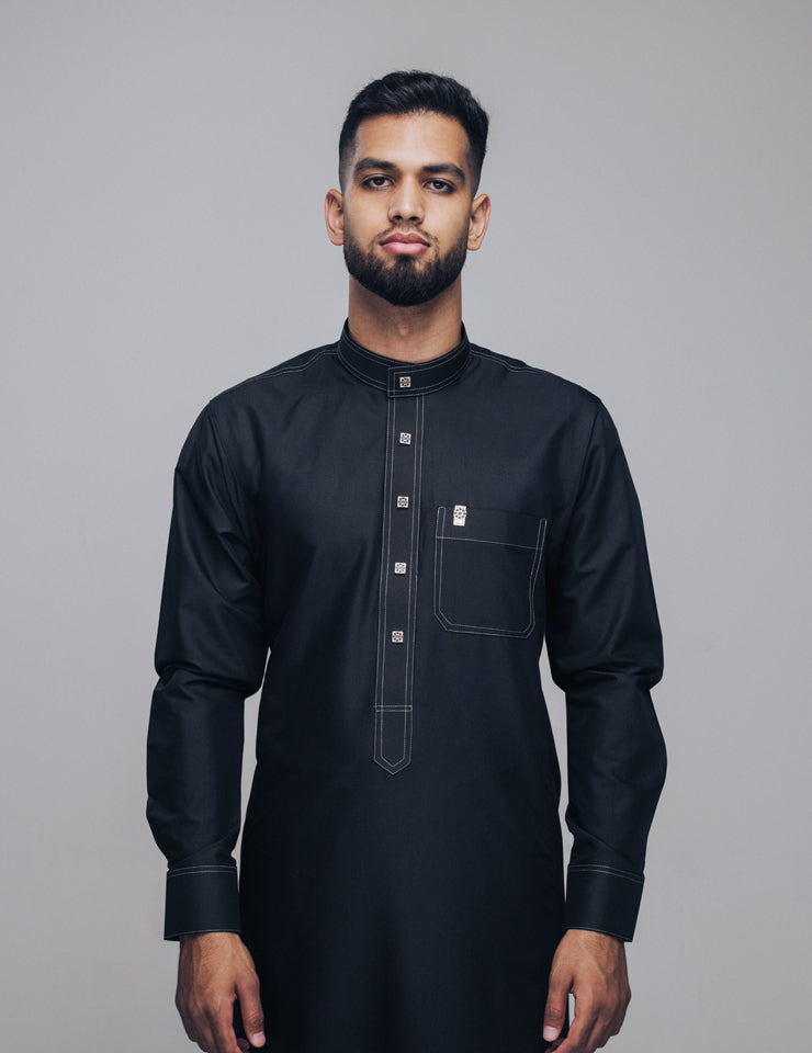 - Saudi Collar – A timeless design that exudes tradition and sophistication. Unique Stitching – Intricate detailing on the contrast, cuffs, and pocket for a touch of elegance.