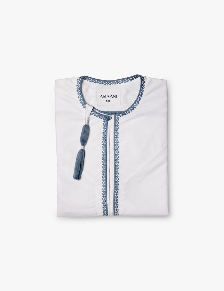 This Omani Thobe design is also available as a matching Father & Son. Click Here to purchase the Kids.